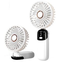 This foldable 1200 mAh portable fan with LED display delivers robust and customizable cooling with 5 speed settings. From gentle breezes to rapid heat relief, this fan helps you to adapt to any summer activity! The large LED display tells you what speed the fan is blowing and the battery level. It is small enough to fit seamlessly into a handbag, backpack or pocket. Since the fan folds in half, set it on your desk top while working, sitting in class or applying makeup. The fan comes with a lanyard so you can also hook it up and wear it around your neck while hiking, camping, or gardening outdoors.